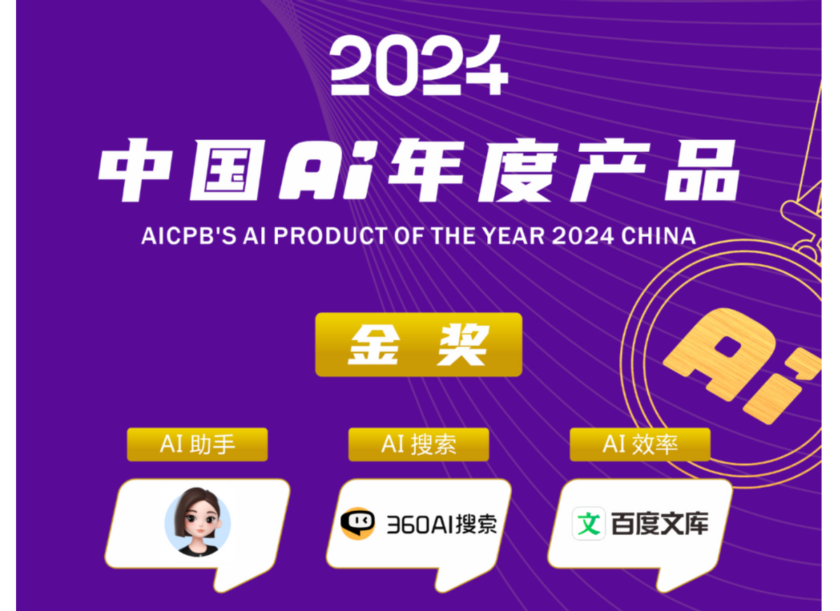 同时,AI产品榜还公布了其年度评选结果,品类排名第一的360AI搜索荣获最具含金量的“2024中国AI年度产品金奖”。