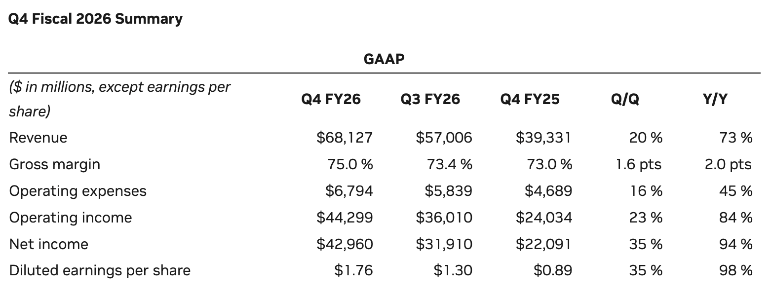 2月26日,英伟达公布了其2026财年第四季度财报。