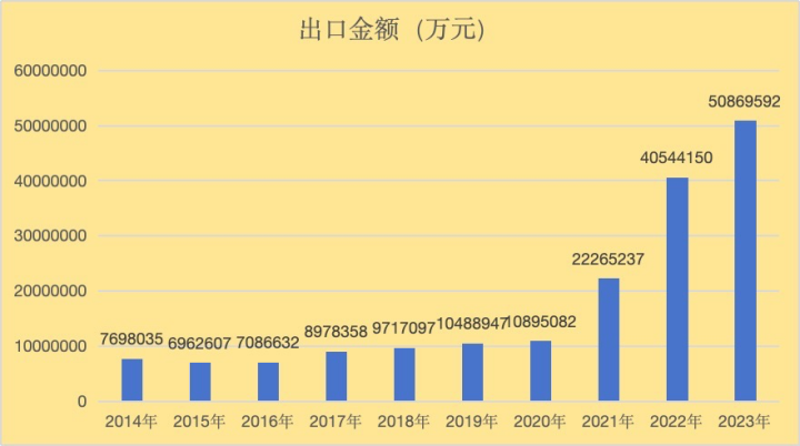2014-2020年,我国汽车全年出口量均在100万辆上下徘徊,直到2021年,新能源汽车产业的爆发式增长才打破了这一局面。