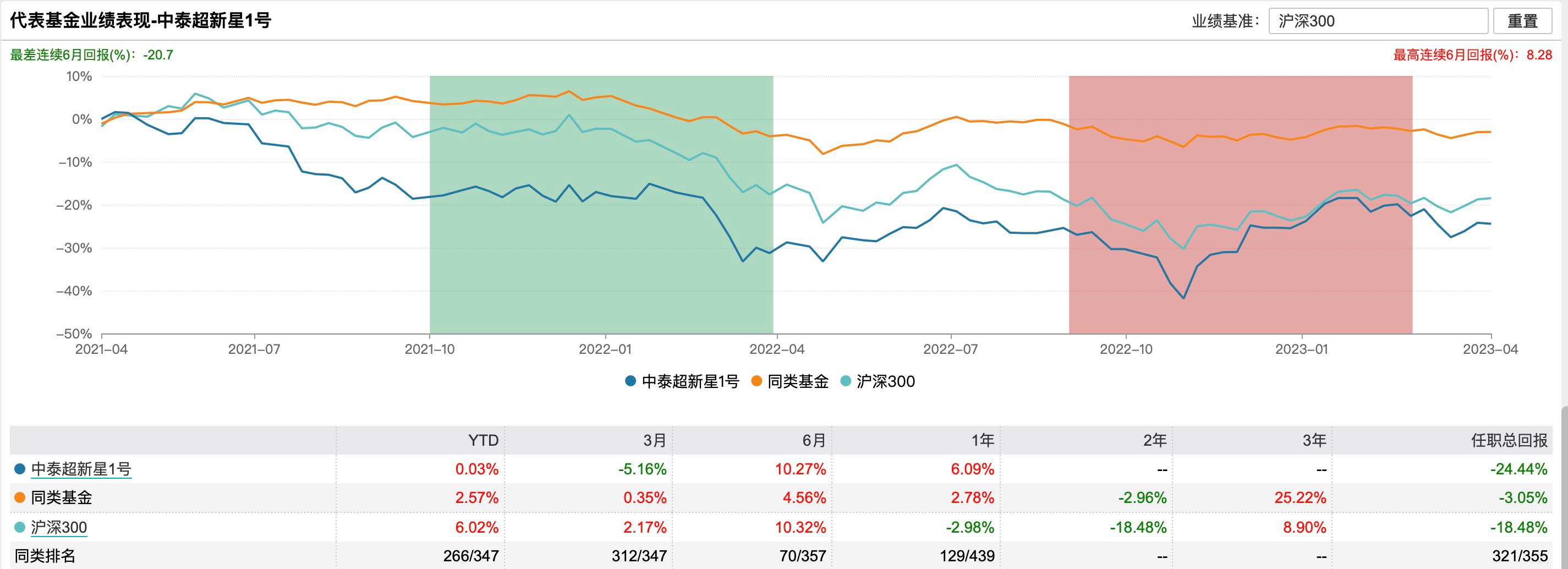 2023年4月12日,中泰超新星1号集合资产管理计划(下称“中泰超新星1号”,JSQF431.OF)成立正式两年。据wind数据,该产品成立两年以来亏损24.44%,今年涨幅为0.03%,而同期沪深300涨幅为6.02%。