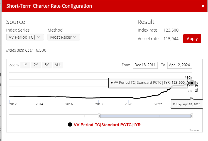 VesselsValue 6500车位标准型PCTC 1年期期租指数