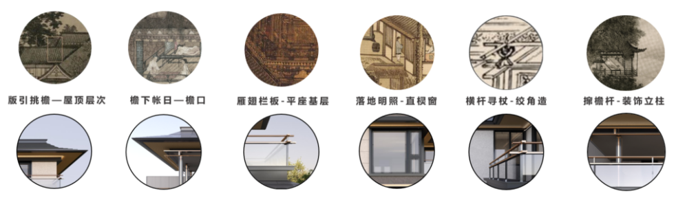 对于文化的表达,在金地从来不是刻板的模仿和简单的复制。同样是对宋代文化的演绎,在广东御湖颂项目的宋代美学,则是一次对宋人生活秩序的重演。建筑师将宋式的十余种构造元素重新建模,用现代材料表达传统形制:挂落、转角窗、博风板……这些语言被隐藏在细部中,而不是放在显眼的位置。