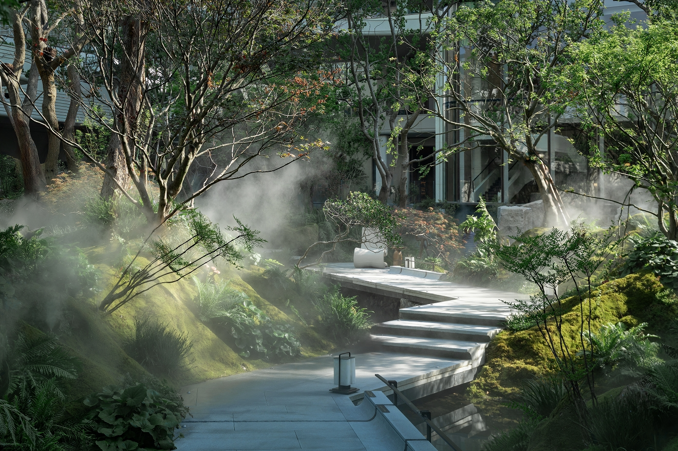 成都锦城序从四川盆地“千川汇流”的地貌特征汲取灵感,以约3000平方米下沉式立体园林重塑自然体验。项目摒弃机械堆坡,以流线等高线模拟山脊结构,结合大面积苔藓、蕨类植栽,形成“微型苔原峡谷”,让居者在步移景异中感受自然灵性。在住宅空间上,项目以全四房矩阵满足家庭成长的变化需求,实现“首改即满配、再改即可终改”,在公共与私密之间取得更符合现代家庭生活节奏的动态平衡。