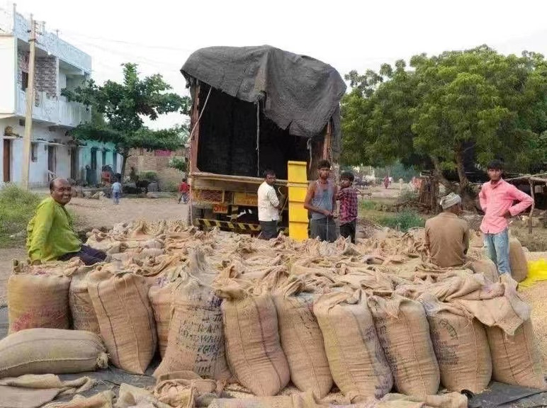 一些消息闭塞的印度农民们把大米运到港口,才得知政府出台了出口禁令。(图源:社交媒体)