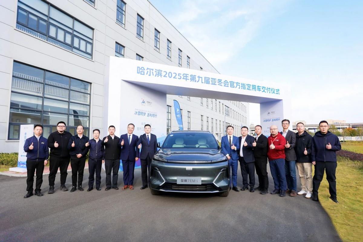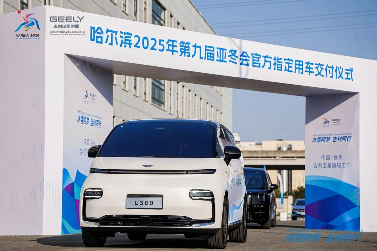吉利控股集团在台州吉利卫星超级工厂,举办哈尔滨2025年第九届亚冬会官方指定用车交付仪式。