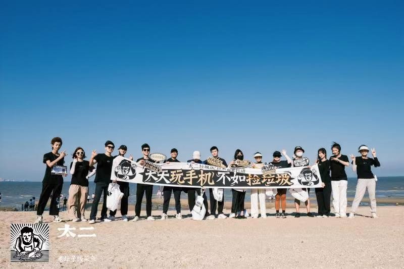 在本次活动中,还出现了一群令人熟悉的面孔,他们就是此前积极参与“太二垃圾侠”净滩行动的粉丝朋友们。