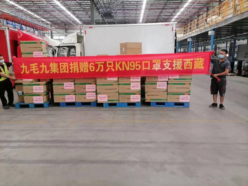 9月,因西藏本土防疫抗疫物资缺口较大,九毛九集团作为广东省对口援藏企业,积极响应广东省连锁经营协会的倡议,主动对接西藏林芝市商务局,捐赠6万只KN95口罩。