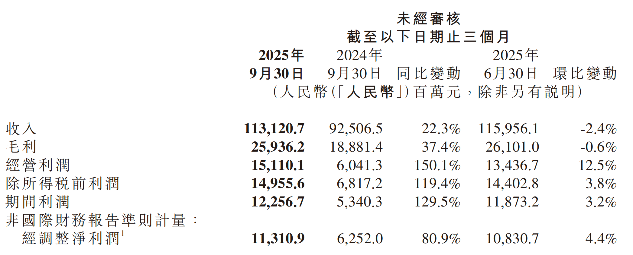 第三季度,小米总营收1131亿元,连续4个季度超千亿,同比增长22.3%;经调整净利润113亿元,同比增长80.9%。