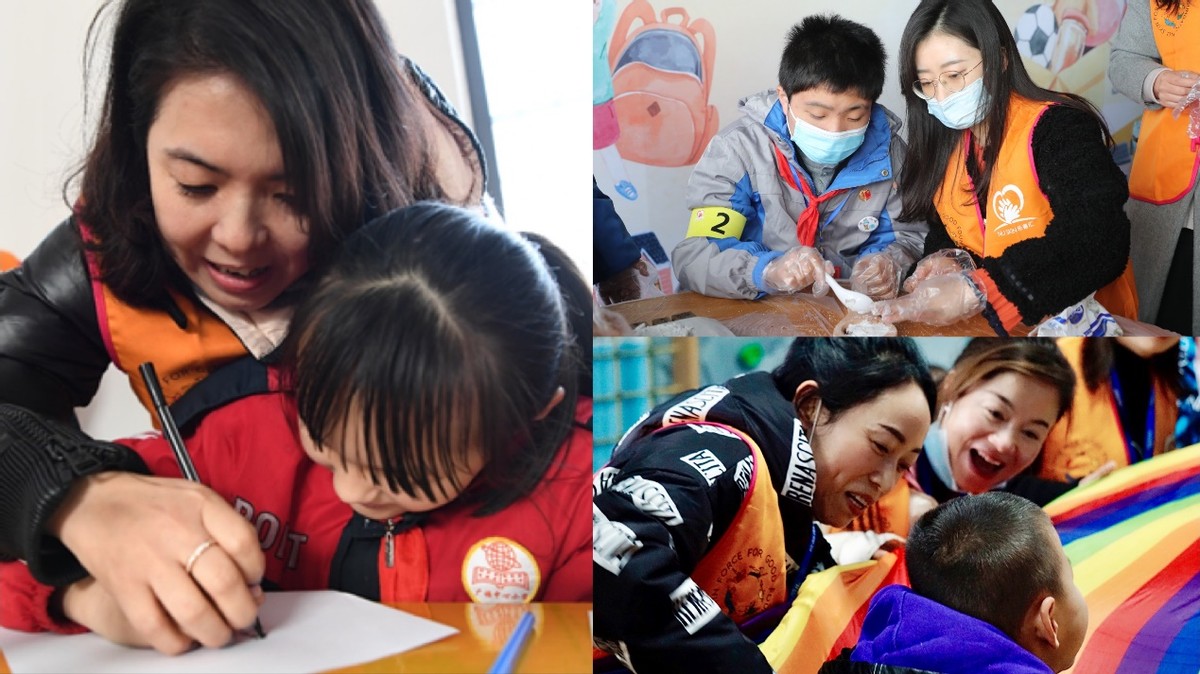 (如新乐善汇志愿者在活动中耐心陪伴特殊儿童)