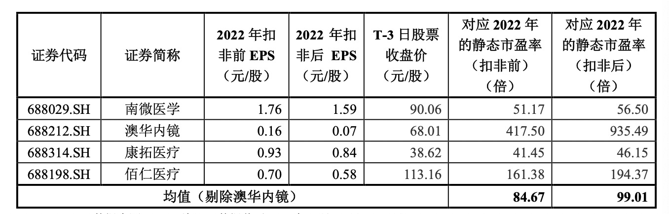 从估值来看,西山科技的发行市盈率为109.28倍,远高于31.64倍的行业市盈率。不过若与同行上市公司相比,西山科技的市盈率水平属于正常范围内。例如澳华内镜(688212.SH)、佰仁医疗(688198.SH)、南微医学(688029.SH)康拓医疗(688314.SH)的发行市盈率分别为935.49倍、194.37倍、56.50倍、46.15倍。