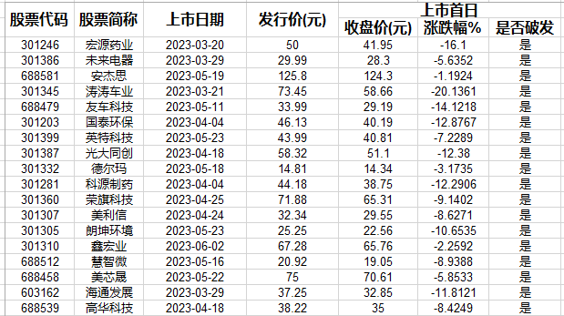 根据时代财经统计,近三个月(2023年3月7日-2023年6月6日)以来上市的102只新股中,共有18只上市首日破发,破发率为17.6%。