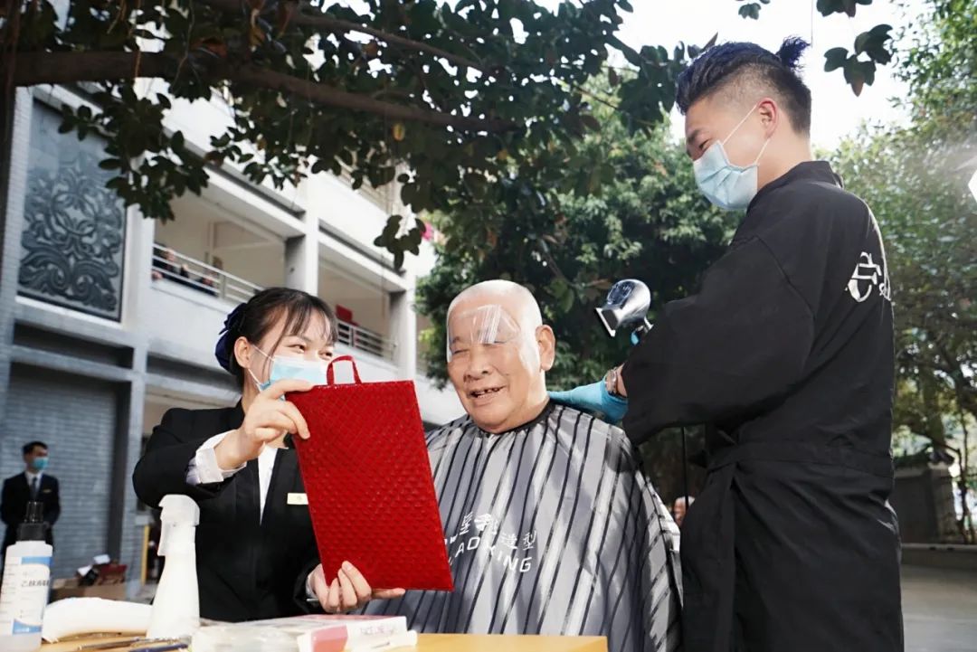萝峰村猛田老人院内,刚剪完发的李爷爷,精神矍铄,照了照镜子。“阿公,您越来越靓仔啦!”李爷爷闻言,有点腼腆地笑了。