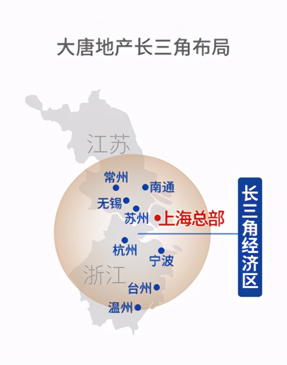 事实上,在正式启动双总部战略之前,大唐地产已经在长三角区域“大展拳脚”。从2019年底至2020年底,大唐地产在浙江和江苏喜讯频传:十个月内在浙江接连开拓9个项目,进入5个城市及区域,平均1个月1个项目;短短半年内,在江苏布局4大城市,开拓6个项目。这使得大唐地产成为2020年度长三角区域蹿升势头最强的外来房企之一。