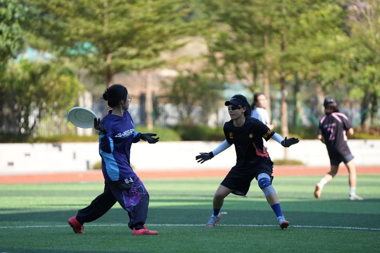 不远处,四分卫眼神锐利,指尖轻推,旋转的橄榄球在天空划出优美弧度;接球手把接球点精确到厘米级,接球后转身快步冲向得分区;防守者则紧盯对方腰间飘带,抓准时机快速出手、拔得飘带。一轮又一轮腰旗橄榄球的角逐,筛选出场上最具力量和智慧的玩家。